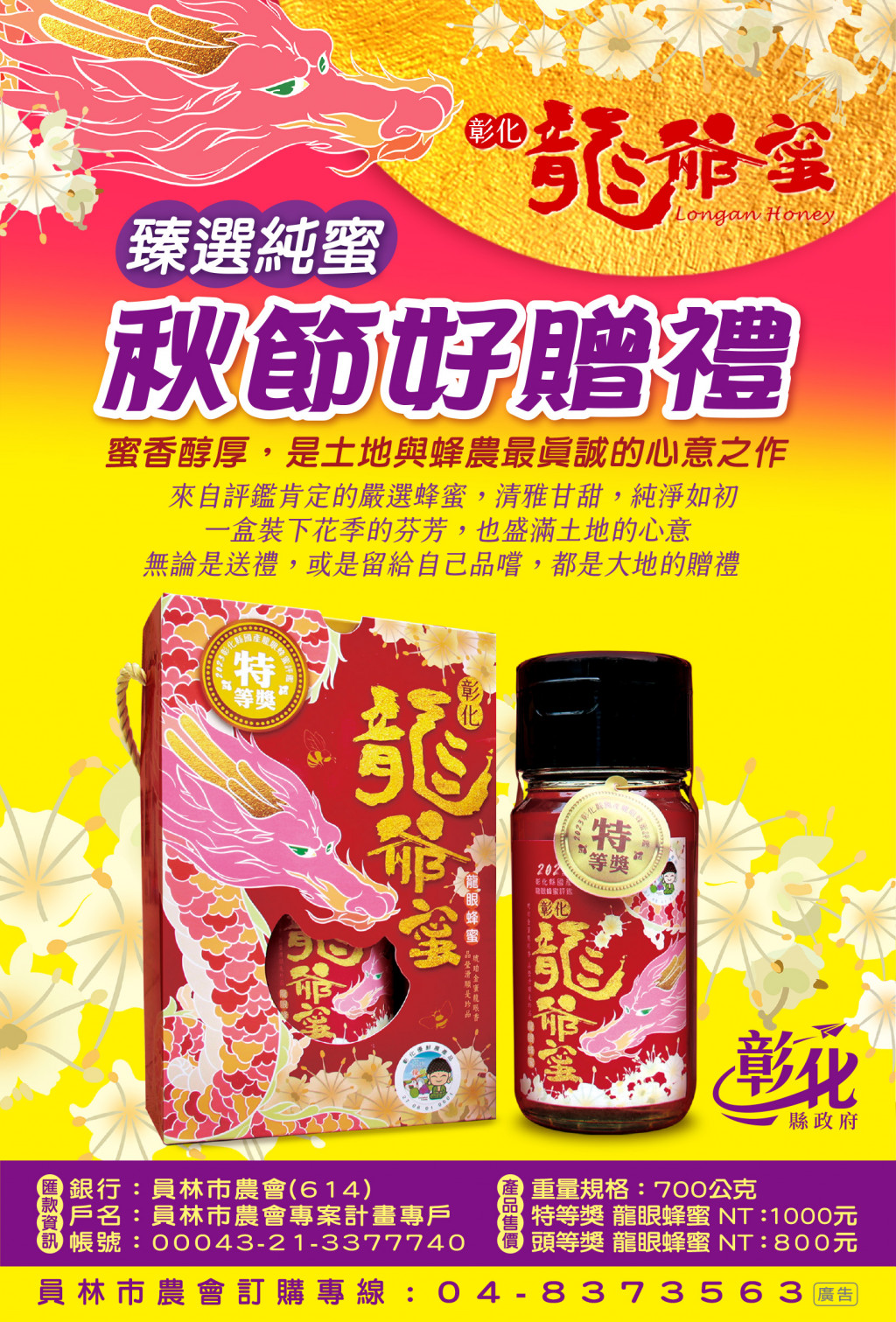 本縣114年度『龍爺蜜』國產龍眼蜂蜜品質評鑑競賽,依據無抗生素及農藥殘留者檢測及色澤、香氣、風味嚴謹評選,蜂蜜品質純正有保障,且一桶得獎蜂蜜只能分裝400瓶,數量有限。
