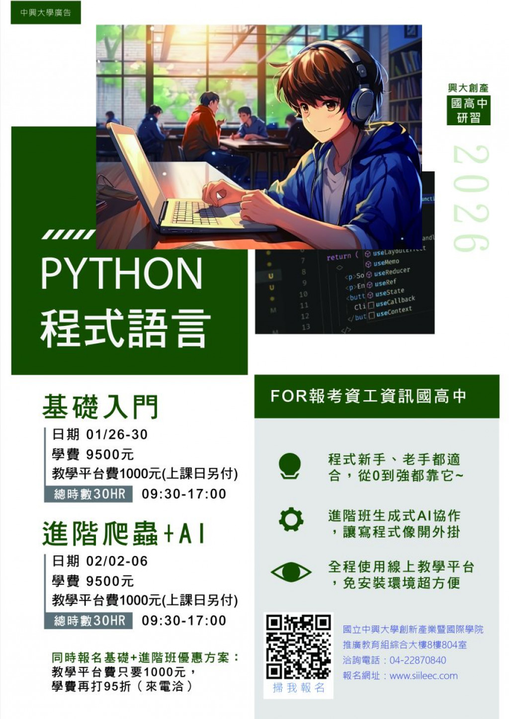 轉知國立中興大學2026年寒假Python程式設計系列、ACP與SSE色彩學國際證照輔導、AI應用故事 X 探索島系列招生