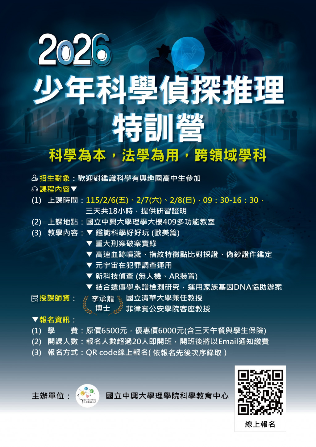 | (四) | 招生對象:對鑑識科學有興趣之國中、高中學生。 |
