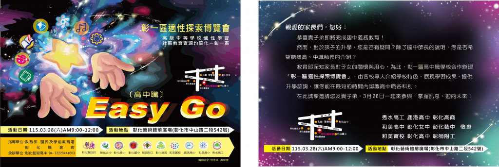 主旨:114學年度高級中等學校適性學習社區教育資源均質化實施方案:就近入學及特色課程宣導實施計畫 ─ 適性探索博覽會,鼓勵國三學生、家長參加。